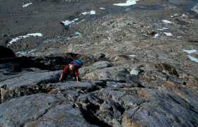 kann, an einigen steilen und rutschigen Stellen zum Gletscher südwestlich